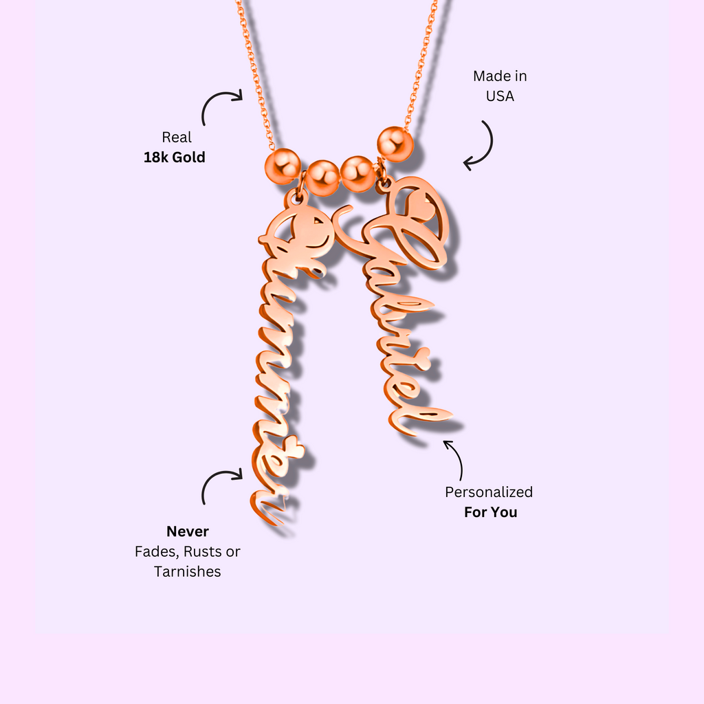Introducing our Customized Vertical Name Necklace, designed specifically for Woman's who cherish meaningful and stylish accessories. Each piece is meticulously crafted to feature a Name pendant, making it a timeless and personal keepsake.