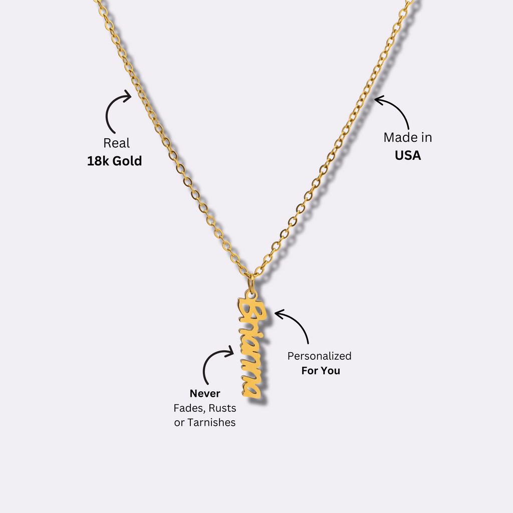 Surprise your special someone with a Customized Vertical Name Pendant Necklace! Showcase your love with a personalized necklace crafted from high quality materials. Perfect for any occasion, this timeless jewelry is sure to bring a smile to her face.