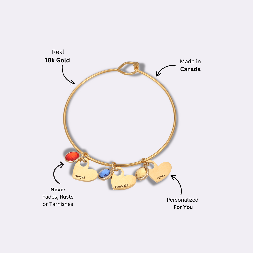 Our Heart Engraved Bangle Bracelet with Birthstone is a perfect blend of personalization and elegance. Customize the heart charm with a name, date, or word, and select a birthstone for a personal touch. Made with high-quality materials and an adjustable chain for a comfortable fit, this bracelet is ideal for any occasion.